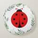 Coussin rond jeté avec une coccinelle mignonne et des feuilles de plante verte. Idéal pour tout le monde. La coccinelle est un symbole universel de bonne fortune ! Super pour les enfants et les adultes !