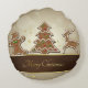 Illustration de Noël élégante et délicieuse : Arbre de Noël en pain d'épices décoré, homme en pain d'épices et cerf en pain d'épices aux étoiles dorées sur un arrière - plan de bokeh brun.