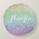 Ajoutez un accent coloré à n'importe quelle chambre avec ce coussin rond personnalisable. Il dispose d'un motif de parties scintillant arc-en-ciel coloré. Personnalisez en ajoutant des noms.