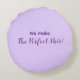 Cute Lovers Round Pillow featuring illustration of purple mittens with adorable bear couple and hearts pattern. Names, romantic text of “Smitten with you beary much!” and “We Make The Perfect Pair!” could be personalized with words of your own choice. Perfect for your loved one as gift for Valentine’s Day or any special occasion!