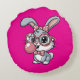 Coussins Ronds Cute Bunny with Glasses Blowing Bubble Gum