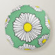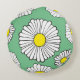 Big and bold daisy pattern on summery round green throw cushion.