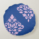 Coussins Ronds Défiler Damas Art I rose sur bleu