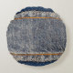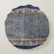 Coussins Ronds Denim blue jeans fabric frame. Bleached denim fabr