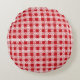 Dentelle rouge et blanche à damiers plaid motif style ferme Coussin rond