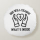 Ce design coussin rond comporte une police d'impression solide de l'année avec des lettres noires affichant l'expression "Dieu changera ce qui est à l'intérieur" avec un coeur plus une croix à l'intérieur de l'ensemble de l'icône de la main de prière dans ce thème de la Bible basée sur la foi. Ce coussin est fabriqué avec un tissu de haute qualité nos coussins sont doux et sans rides le couvercle est lavable à la machine.