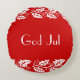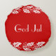 Un design rouge et blanc avec baies blanches. Il est accompagné du texte "Dieu juil", qui se traduit par "Joyeux Noël" en suédois et dans d'autres langues scandinaves. Vous pouvez customiser ce coussin rond maintenant avec votre propre texte.