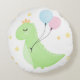 Dinosaure mignon portant une couronne et portant des ballons festifs, le tout dans des couleurs pastel douces. Customisez à votre goût.