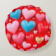 Disposition vive de cœurs de différentes tailles et couleurs sur un fond rouge vif. Les cœurs sont principalement des nuances de rose, de rouge et de bleu, avec quelques cœurs dorés et argentés plus petits dispersés çà et là. La composition globale est ludique et vibrante, évoquant des sentiments d'amour et d'affection, ce qui la rend appropriée pour des thèmes romantiques ou des célébrations comme la Saint-Valentin.