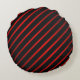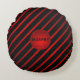 Coussins Ronds Élégant Diagonal Noir Red Stripes Nom du monogramm