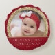 Coussins Ronds Elegant Red Gold Photo de 1er Noël de Bébé