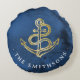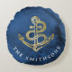Coussins Ronds Elégante Ancre aquarelle Nom nautique Marine Bleu