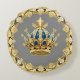 Une couronne dorée magnifiquement décorée avec des motifs complexes encerclés par un motif floral, symbolisant le pourcentage, le luxe et la célébration, dressé contre un arrière - plan doux et neutre qui renforce son élégance royale.
