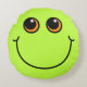 Ce coussin a un visage vert de sourire heureux d'emoji avec les yeux oranges.