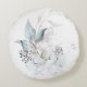 Un oreiller à jetons ronds avec une citation inspirante Écriture représente une belle aquarelle fleurie design avec des feuilles simples bleu clair et gris. Il présente une Bible Verse Ésaïe encourageante 41:10, "Ne craignez pas, car je suis avec vous."
