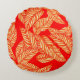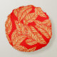 Coussin rouge rond avec imprimé feuille (motif feuille).