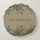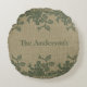 Un beau motif de feuilles vertes avec dentelle verte sur cet oreiller rond rustique de campagne. Personnalisez-le avec votre nom ou n'importe quel texte.
