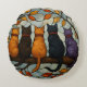 Coussins Ronds Five Cats on a Tree Branch Stained Glass Style