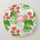 Aquarelle design motif avec des fleurs et des oiseaux flamands, la monstère et les feuilles de palmiers.