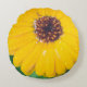 Floral thème Coussin rond avec une photo de belle fleur de calendula jaune après la pluie. Un ajout élégant et un accent vibrant à votre intérieur. Il conviendra particulièrement bien à la décoration rustique et campagnarde.