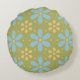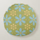 Coussins Ronds Fleurs bleues et jaunes Abstraites rétro sur vert