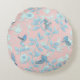 Coussins Ronds fleurs bleues et oiseau, couleur rose clair Arrièr