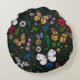 Coussins Ronds Fleurs sauvages et papillons sur le noir