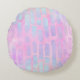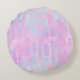 Un coussin rond avec un motif arrière - plan abstrait. Les aquarelles rose violet et bleu composent ce design artistique qui présente des formes verticales rectangle sur un arrière - plan doux et marbré.