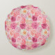 Un joli coussin rond floral de couleur fuchsia, blanc, rose pâle et magenta