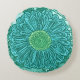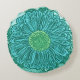 Coussin rond dans un imprimé de marguerite Gerbera, basé sur une photo, numériquement transformé et teint à la main - tons d'aqua doux et turquoise