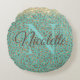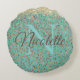 Coussins Ronds Glitterie or Monogramme sur Turquoise