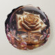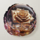 The image represents a golden rose encased within a transparent globe. The rose itself is positioned in the center of the globe, its golden petals slightly open in a blooming manner. The background is dark, allowing the rose, the globe, and the bubbles to stand out, creating an atmosphere of enchantment and wonder.