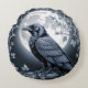 Set the tone for a mystical eerie mood with this round throw pillow. The design features a regal black raven perched before a glowing full moon, rendered in a monochrome charcoal palette with intricate leaf details. It is the perfect way to celebrate a Halloween home party or a unique gift for an edgy homeowner.