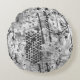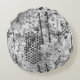 Cet oreiller à lancer présente un abstrait éclectique qui comprend des cercles de rayures zébrées. Les couleurs vont du gris (ou du gris) au charbon de bois en passant par le noir.