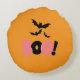 Ajoutez une touche ludique de charme d'Halloween à votre maison avec ce design coussin rond et festif éffrayant ! Le coussin présente un mignon fantôme tenant un citrouille, une chauve-souris volante fantaisiste, une araignée pendante d'une délicate toile d'araignée, et un adorable fantôme flottant avec le mot "Boo" à côté. Le texte animé "Happy Halloween" est complété par des douceurs casquettes et colorées de sorcière classique, rendant ce design à la fois amusant et festif. Cette coussin ronde est confortable et entièrement personnalisable, il est parfait pour décorer votre salon, chambre ou espace fête d'Halloween. Cosy, élégant et plein de vibrations éffrayantes !