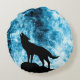 Coussins Ronds Howling Wolf Hiver neige bleue fumée Abstraite