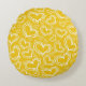 COUSSINS RONDS JAUNE CLAIR AVEC DES COEURS BLANCS ET DES FLEURS