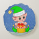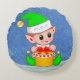 Joli petit elfe de Noël sur bleu clair arrière - plan coussin rond. Croyez que le texte peut être personnalisé.