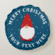 Joli gnome de Noël d'hiver rond lancer oreiller avec texte personnalisé. Coussins et accessoires tendance pour femmes et filles. Amusants Décor maison de vacances idées cadeaux pour chambre, bureau, canapé, lit, chaise etc. Des cadeaux personnalisés amusants pour les amis et la famille. Troll rouge avec grand casquette et longue barbe. Drôle décor X-mas.