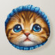 Visage de chat roux adorable imprimé sur un doux coussin décoratif portant un capuchon tricoté bleu. Décoration charmante et fantaisiste pour les nurseries, les chambres d'enfants, les espaces de vie cosy, les cadeaux et les amoureux des animaux de compagnie.