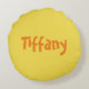 Un joli oreiller rond en forme de girafe, cet article présente un fond beige avec un girafe sur le devant. Le dos comporte un emplacement pour insérer votre nom en orange. Personnalisez le vôtre dès aujourd'hui !