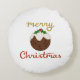'Joyeux Noël' en fausse couleur or et écriture rouge avec illustration d'un pudding de Noël au centre saint.