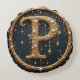 Monogramme luxueux en lettre dorée orné de perles, de diamants et de filigranes baroques ornés dans un cadre décoratif circulaire ; design élégant, royal et très détaillé pour un usage éditorial ou de marque.