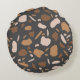 Mélange de marron, beige, tan et gris foncé dans cette coussin ronde motif en marbre terrazzo