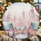 Une scène hivernale à la menthe et rose avec le marché de Noël, les châteaux et la neige!