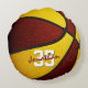 Cette équipe sportive colore le coussin de basketball à thème pour lui ou elle dispose de l'image réaliste d'un basketball qui a alternativement le marron et l'or recolorié panneaux - personnalisez avec le nom du joueur dans une police de style "autographe" sur le numéro de maillot de l'athlète - par katz_d_zynes
