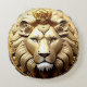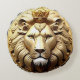 Représentation artistique détaillée d'un lion royal orné d'une couronne sur un emblème circulaire en or, représentant la force, la noblesse et l'autorité royale.