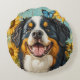 Peinture de Chien mignon Beurre de Tournesol Rustique Coussin rond Coussin d'oreiller dispose d'une jolie peinture d'un chien avec des tournesols jaunes et des papillons. Parfait comme cadeau pour les amoureux de les chiens. Créé par Evco Studio www.zazzle.com/store/evcostudio