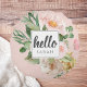 Coussins Ronds Modern Watercolor Pink Flowers & Hello & Nom