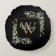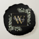 Coussins Ronds Monogramme d'or noir personnalisé Vert Floral